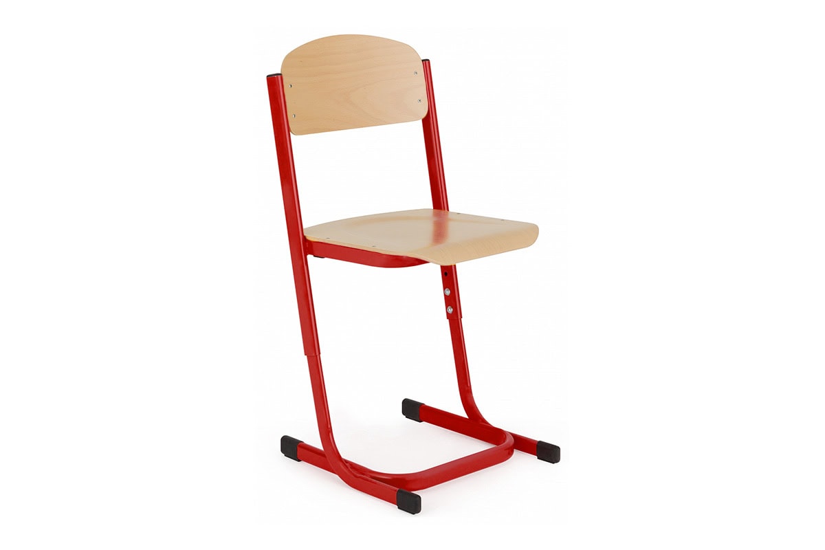 Odolná školní židle s pevnou ocelovou konstrukcí a možností výškového nastavení pro různé věkové kategorie žáků. Sedák a opěrák z lakované překližky nebo odolného CPL materiálu zajišťují dlouhou životnost a snadnou údržbu. Stabilní provedení s plastovými návleky chrání podlahu i desku lavice před poškozením. Technické specifikace